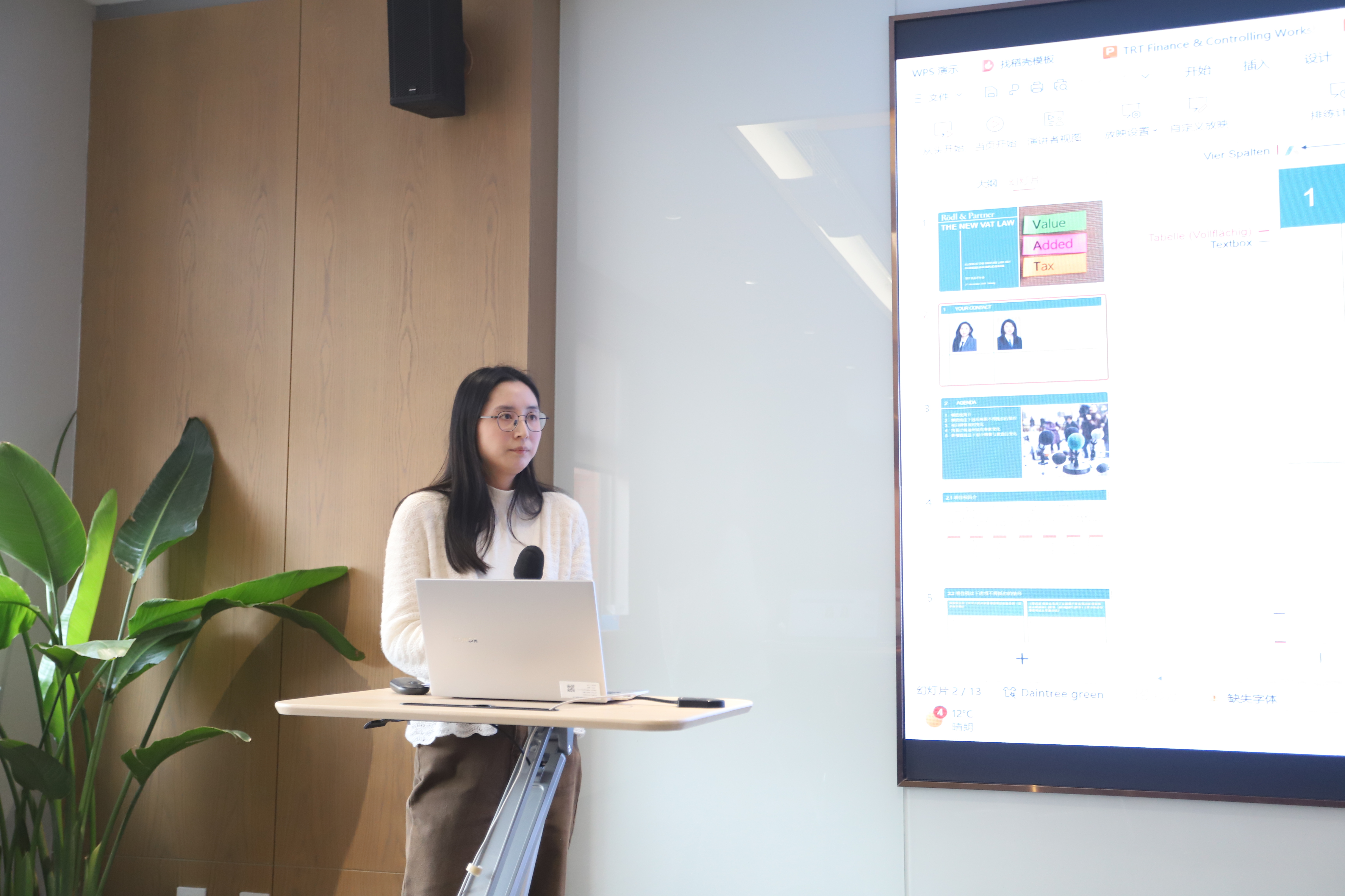 首先,儒德管理咨询(上海)有限公司太仓分公司高级咨询师刘华、项妮女士带来题为《〈增值税法〉新规解读与影响》的30分钟专题演讲。她们指出,《增值税法》将于2026年1月1日正式施行,标志着中国最大税种——增值税从行政法规正式上升为国家法律,是中国税收法治化进程的重要里程碑。刘华、项妮详细解析了新法保留三档税率结构、优化进项税抵扣机制、精简视同销售范围、首次明确简易计税征收率等关键变化,并结合企业实际运营场景,深入浅出地阐述了政策调整可能带来的合规影响与应对建议。