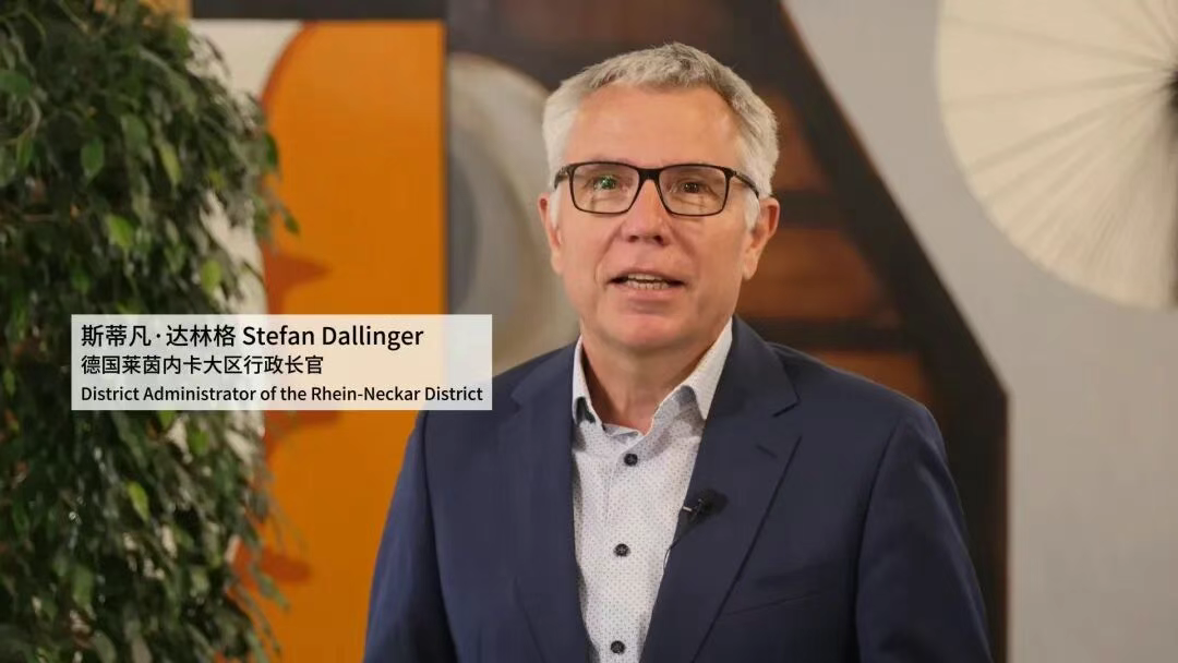 莱茵内卡大区行政长官斯蒂凡·达林格先生发来视频祝贺