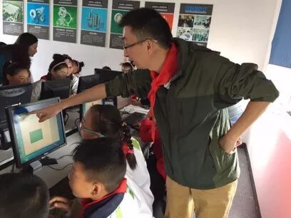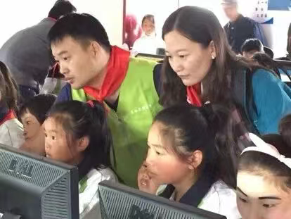 孩子们的第一堂电脑课,志愿者充当起教学助手。