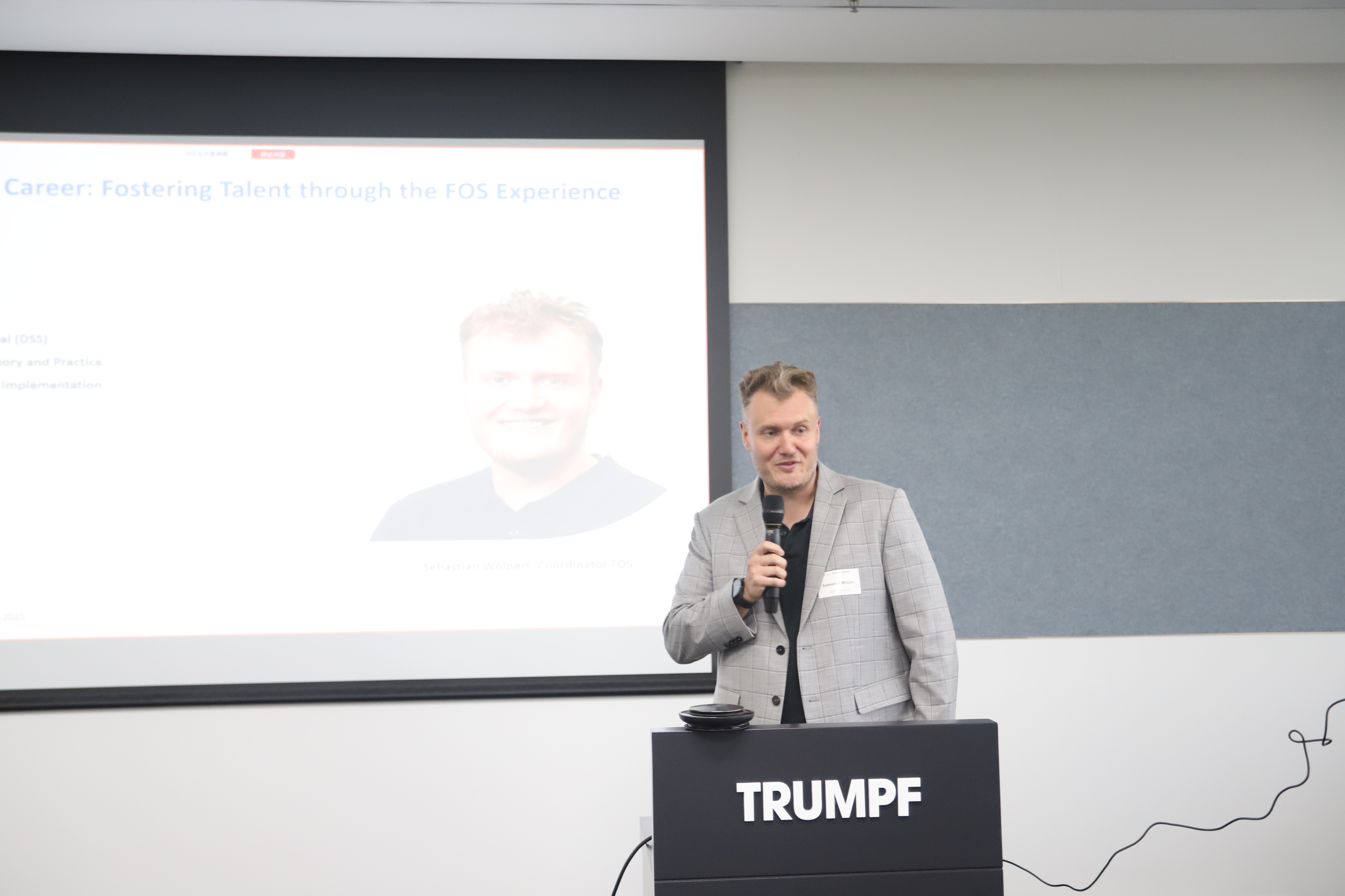 然后,“从课堂到职场:通过FOS体验培养人才”的主题分享由上海德国学校专业中学商务与管理负责人Sebastian Wolpert先生进行分享,Sebastian Wolpert先生介绍了该校FOS模式,该模式为企业提供双语人才储备、提升雇主品牌,同时帮助学生增强职业认知与跨文化能力。随着FOS学生人数快速增长,校方呼吁更多企业参与,深化产教融合。