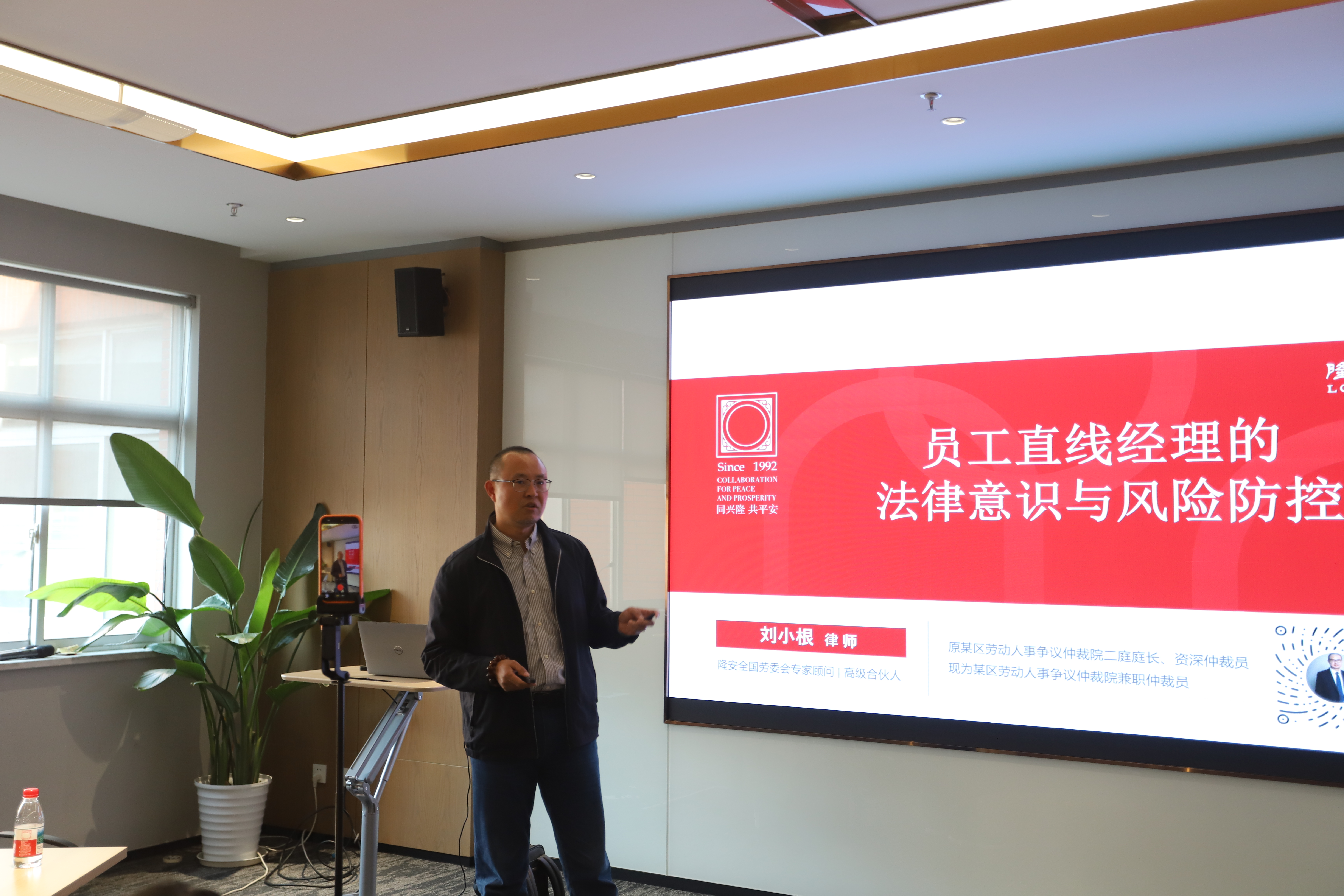 本次研讨会特邀北京市隆安律师事务所高级合伙人刘小根先生担任主讲嘉宾。讲座围绕员工管理全流程中的法律风险识别与防控展开,旨在提升直线经理的法律意识和合规管理能力。内容分为上下两个部分:上半场聚焦招聘录用、试用期管理及考勤休假三大模块,重点解析了面试问题边界、口头薪酬承诺风险、Offer撤销应对策略、试用期考核标准可视化与留痕管理、工时制度适用及各类假期审批规则等实务要点;下半场深入探讨违纪处理与解雇风险防控,并就工伤认定、离职交接、岗位调整与培训合规等特殊场景提供操作指引。此外,刘律师还系统讲解了针对盗窃、旷工、学历造假等六类典型违纪行为的事实固定方法。
